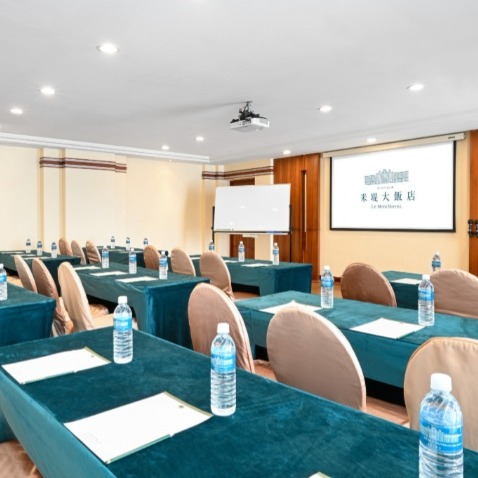- 會議專案保證人數須達30人,會議室由飯店依人數安排;45人以內教室型安排米堤廳,會議專案人數46~70位使用漢宮廳需另補場租NT10,000/時段。